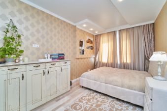 Просторная и уютная кухня 15,2 метра, кухня столы и стулья выполнены также из массива, сплит система Kentatsu, телевизор LG? духовой шкаф также от Hotpoint Ariston, пол из керамогранита, столешница из натурального камня, холодильник Bosch, с выходом на балкон 12,4 метра с большим встроенным шкафом, стиральной машинкой Haier и сушилкой Hotpoint Ariston и множеством места для хранения. Просторная гостиная 24,5 метра, пол из керамогранита, мебель комплект по индивидуальному заказу, тумба из массива, телевизор и сплит система. Две просторные спальни 17 и 15 метров, в первой спальни классическая мебель, также из массива, на полу ламинат, вторая также с мебелью из массива и кроватью из Askona на пульте управления и с разными режимами. Ванная комната 7 метров, с большой угловой ванной и сан узлом с гигиеническим душем. В ванной установлен бойлер Electrolux и фильтры для очистки воды, в том числе фильтр для смягчения воды. Прихожая 15 метров со встроенным шкафом-купе и обувницей из массива.