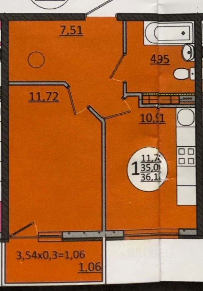 Арт. 122812303 Продается светлая и уютная однокомнатная квартира общей площадью 36,15 кв. м. в современном жилом комплексе "Магистральный".