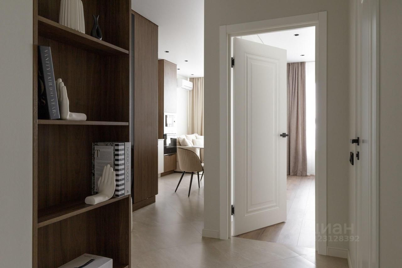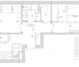 В прихожей есть встроенный шкаф для верхней одежды. В квартире есть раздельный санузел, в одном из которых установлена стиральная машина, а также шкафы для хранения вещей.