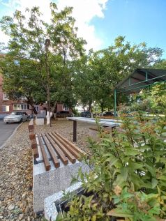 Облагороженный двор, удобная парковка для машин. Во дворе дома видеонаблюдение.