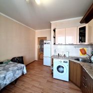 Двор ухоженный, закрытая придомовая территория с парковкой, детскими и спортивными площадками, видеонаблюдением. До пляжа 5 минут пешком.