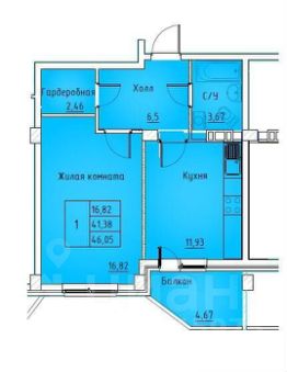 Однокомнатная квартира общей площадью 47.кв. метр.