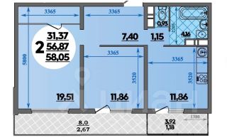 Общая площадь квартиры - 70 м2 (по выписке 57 м2):