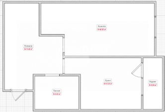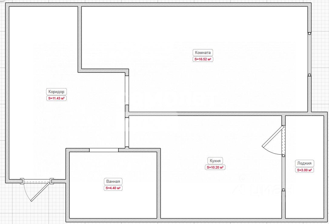 Площадь объекта 43м2. Высота потолка 2,8м. Кухня 10м2. Комната 16,5м2