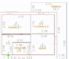 Квартира общей площадью 57,6 кв.м. ( лоджия 16,1 кв.м) находится на комфортном 2 этаже.