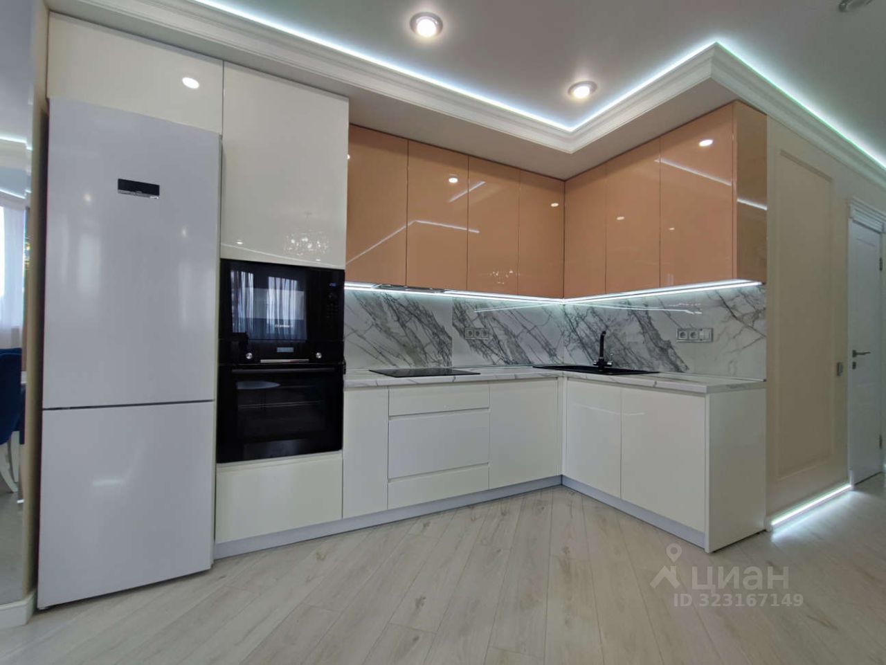 Установлена качественная техника Bosch холодильник, духовой шкаф, варочная панель, микроволновка, посудомойка, вытяжка, стиралка, сушилка, ТВ