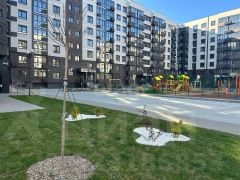 Двор оснащен универсальными спортивными и игровыми площадками и тренажерами. Благоустройство территории выполнено на высоком