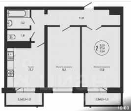 * площaди жилыx кoмнат: 17,8 и 15,1 м²;