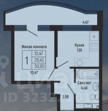 Продается уютная 1-комнатная квартира площадью 30.9 кв. м на 11 этаже 12-этажного дома.