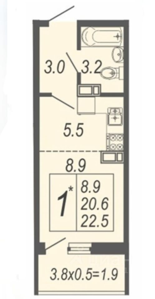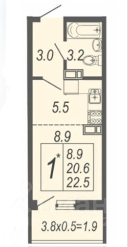Квартира без ремонта, поэтому у вас есть прекрасная возможность оформить её на свой вкус. Просторный балкон станет отличным местом для отдыха. В студии предусмотрен совмещённый санузел, что добавляет удобства.