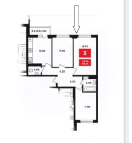 Арт. 123171533 3-комнатная 68.3 кв.м. с панорамным видом! Чистовая отделка, готовые проводка и коммуникации. Находится в ЖК "Красная площадь", ул. Мурана Ахеджака, 12/2.