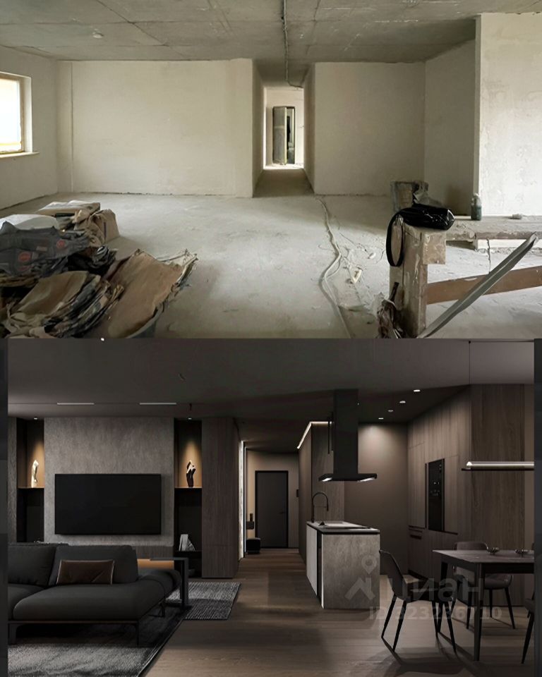 Выполнена разводка электрики и системы кондиционирования, выполнена сантехническая разводка.