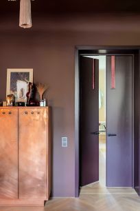 На полу инженерная доска, прихожая, ванная и зона кухни уложена мрамором. Потолок спроектирован без острых углов по самой современной технологии. На стенах моющаяся французская краска Argile. Оконные проемы и балкон заменены на трехкамерные деревянные стеклопакеты, а подоконники выполнены из натурального камня.