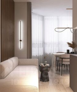 Квартира находится на видовом этаже, откуда открывается великолепный вид на город через увеличенные окна, её общая площадь 30 м2, выполнен дизайнерский ремонт, любая деталь была продумана до мелочей, всё сделано в едином стиле, каждый узел примыкания сформирован для удобства и гармоничной жизни в квартире.