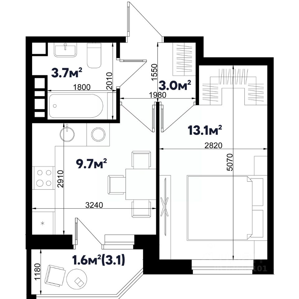 Продаётся 1-комнатная квартира в сданном доме (Литер 2.8), срок сдачи: IV-кв. 2024, общей площадью 31.1 кв.м., на 6 этаже. Расположение, транспортная доступность