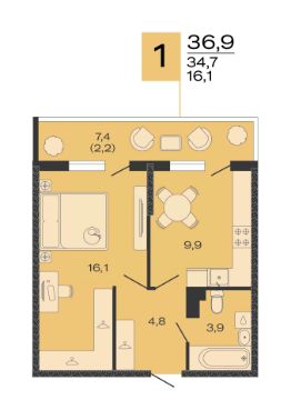 Общая площадь36,9 м²