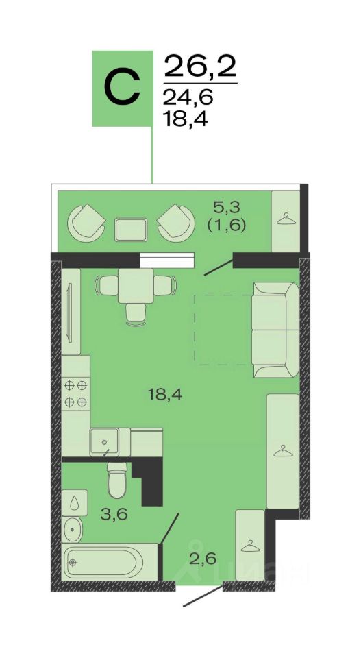 В продаже квартира в жилом комплексе "Дзенпарк" от застройщика ГК "Лендекс"!