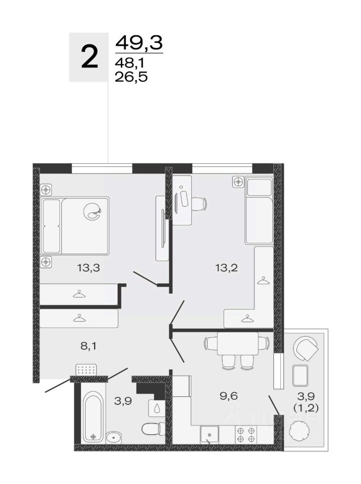Общая площадь49,3 м²