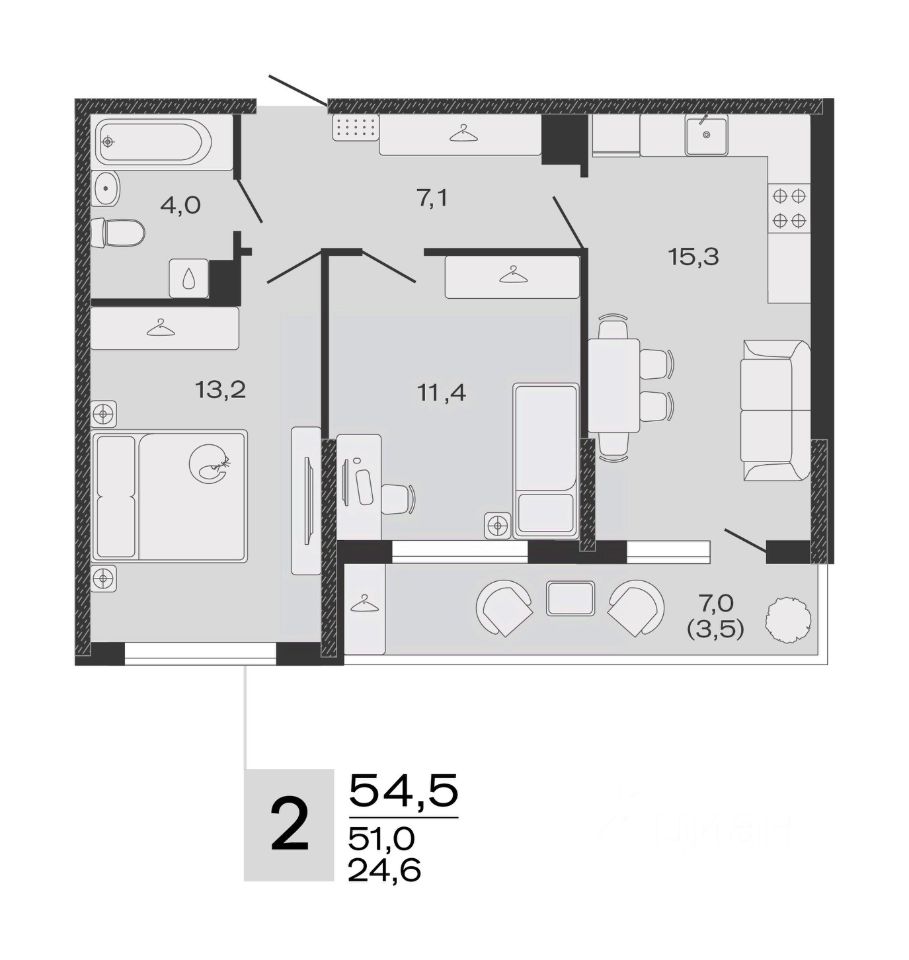 В продаже квартира в жилом комплексе "Дзенпарк" от застройщика ГК "Лендекс"!