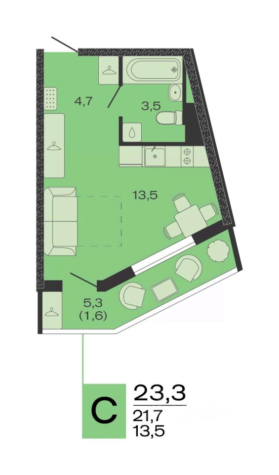 Общая площадь23,3 м²