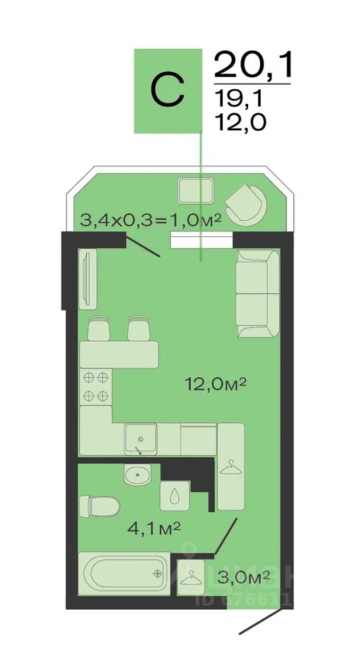 Общая площадь20,1 м²