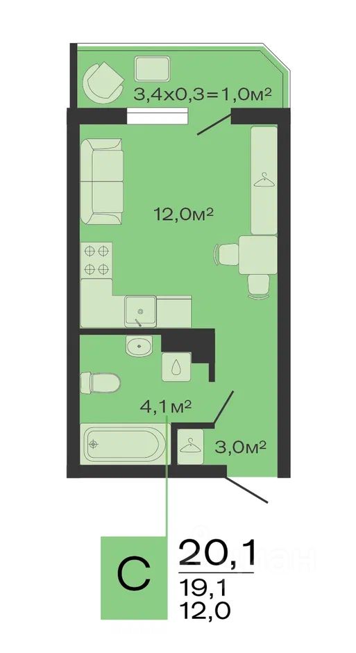 Общая площадь20,1 м²