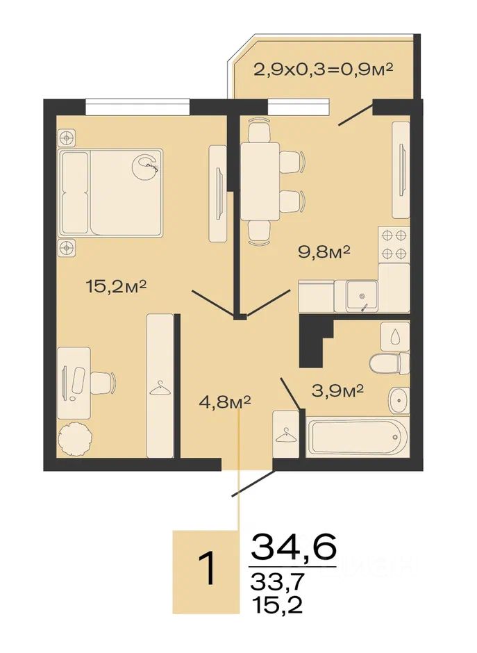 Общая площадь34,6 м²