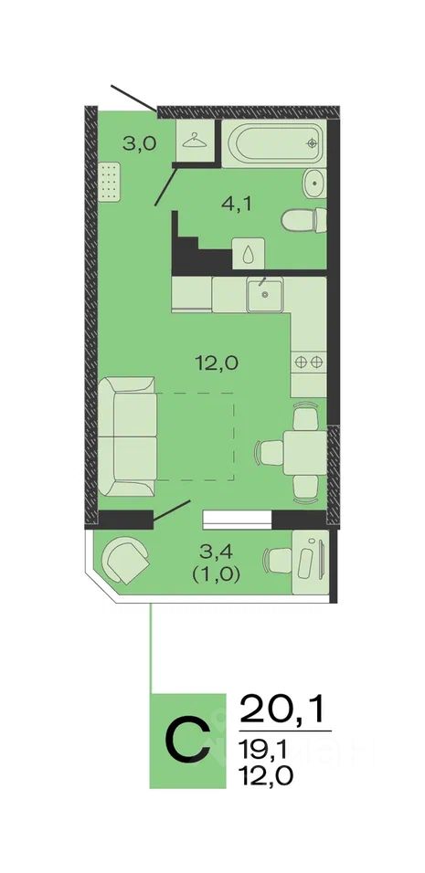 Общая площадь20,1 м²
