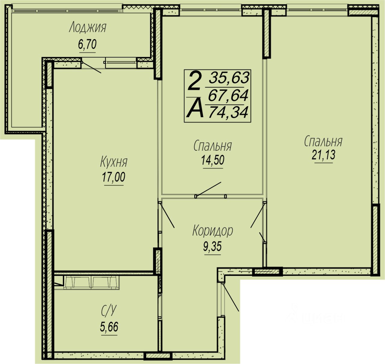 Общая площадь74,1 м²