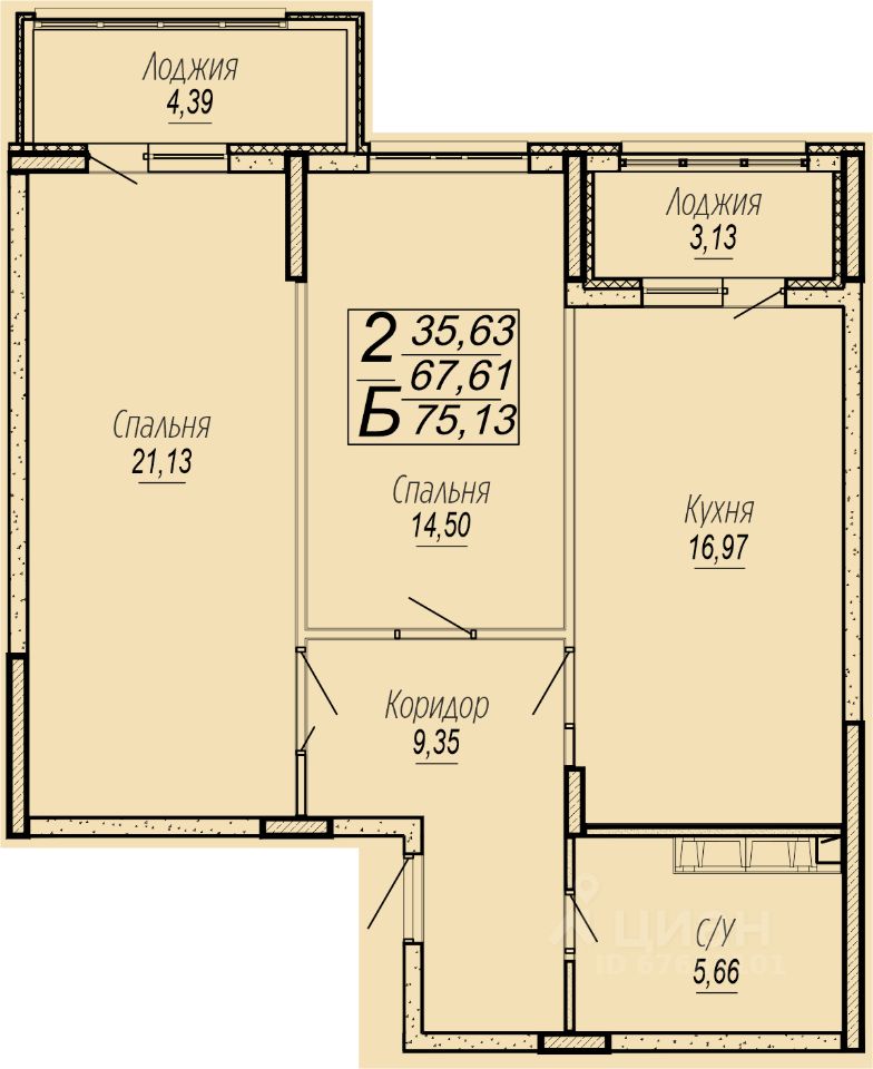 Общая площадь75,4 м²