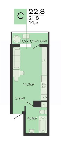 Общая площадь22,8 м²