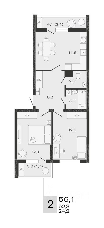 Общая площадь56,1 м²