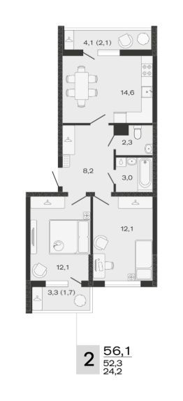 Общая площадь56,1 м²