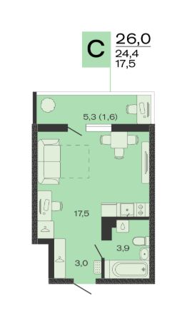 Общая площадь26 м²