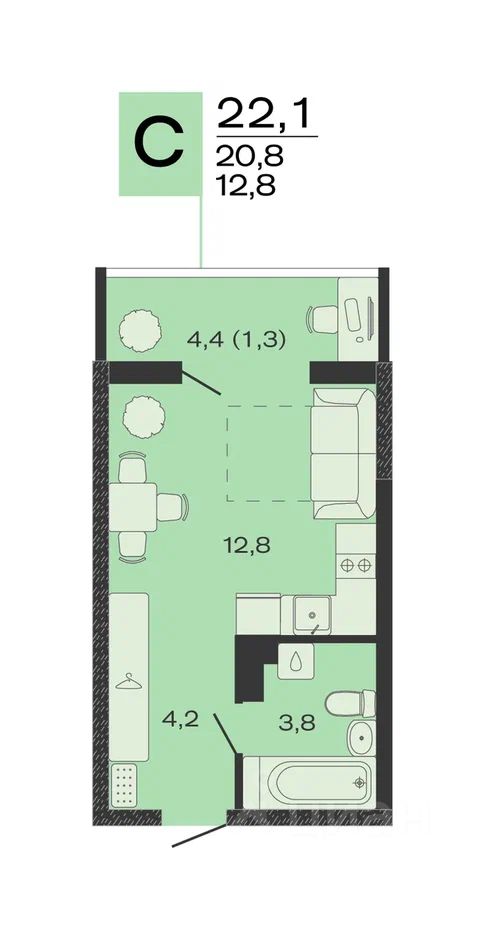 В продаже квартира в жилом комплексе "Дзенпарк" от застройщика ГК "Лендекс"!