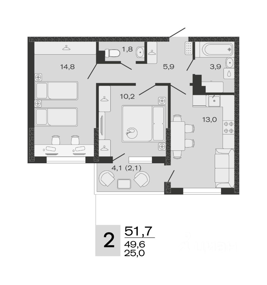Общая площадь51,7 м²