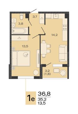 Общая площадь36,8 м²