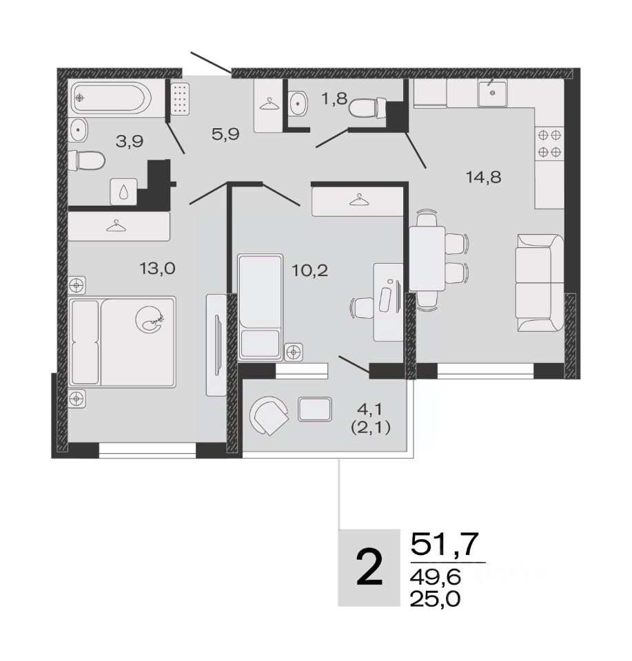 В продаже квартира в жилом комплексе "Дзенпарк" от застройщика ГК "Лендекс"!