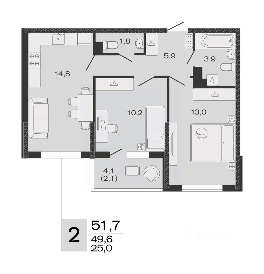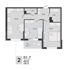Общая площадь51,7 м²
