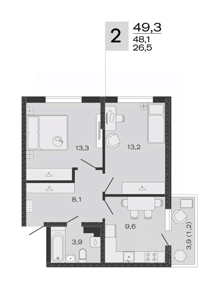 Общая площадь49,3 м²