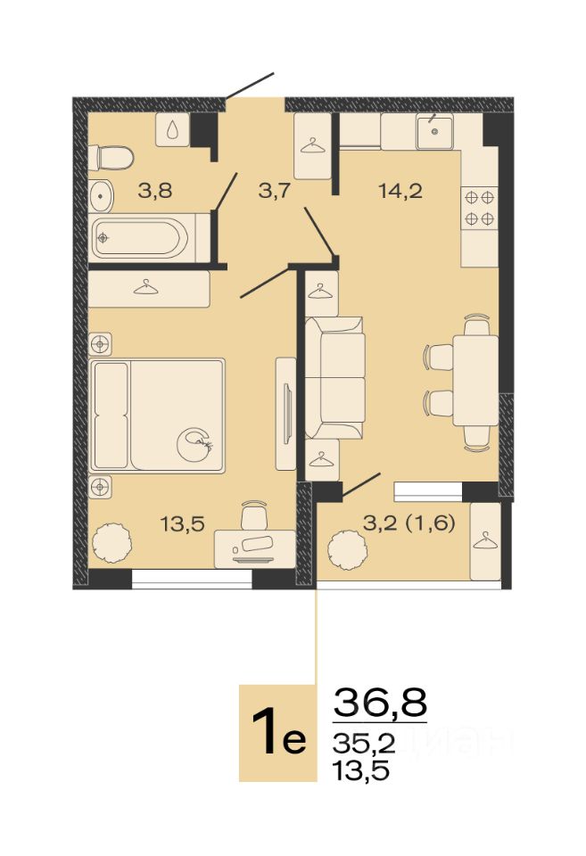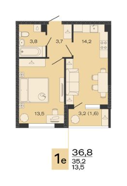 Общая площадь36,8 м²