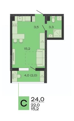 Жилая площадь15,2 м²