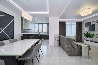 Планировочным решением предусмотрены: гостиная, просторная столовая с зоной кухни, 2 спальни, 2 санузла, душевая зона, гардеробная комната, холл, огромная лоджия с панорамным обзором.