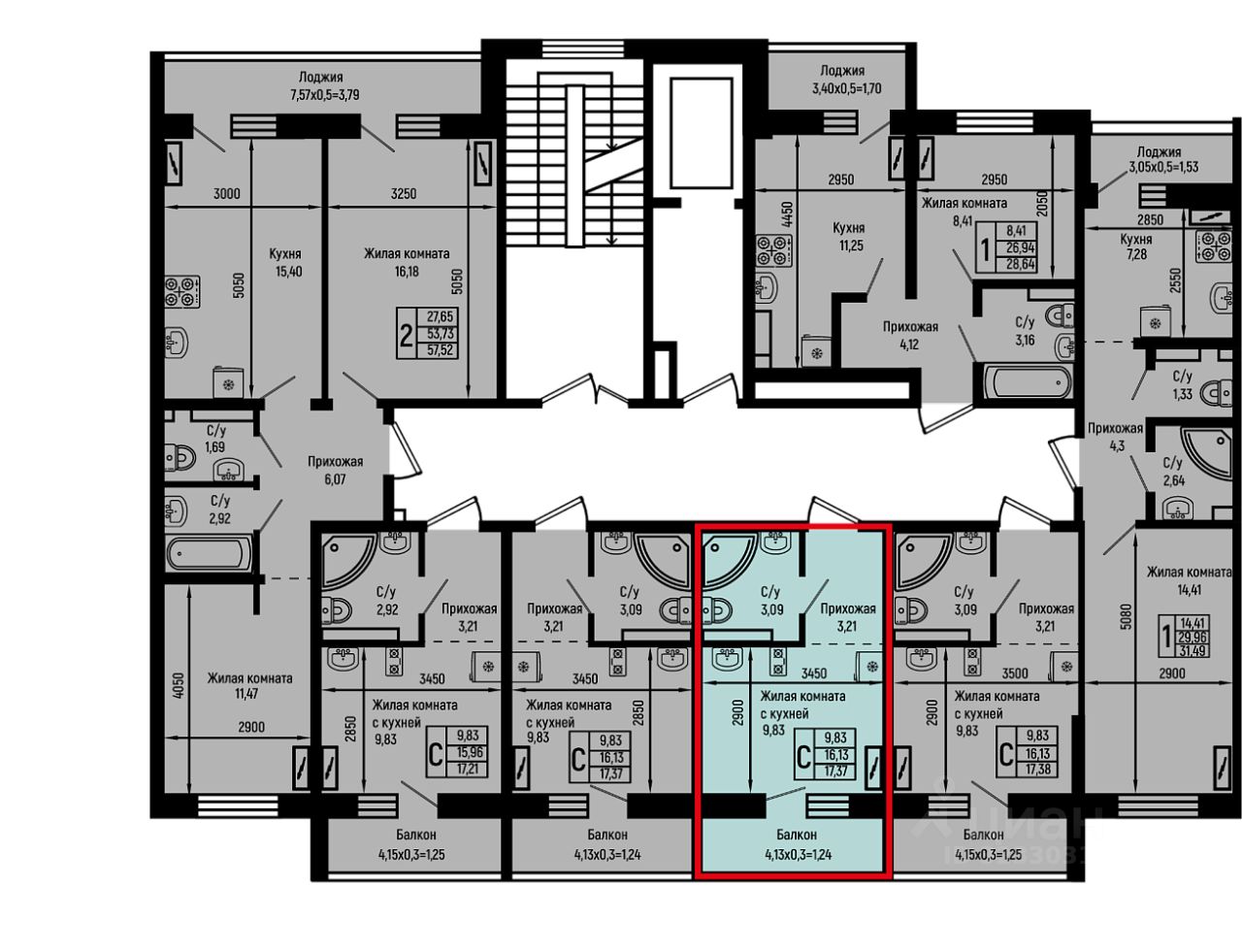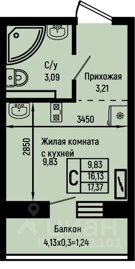 17,37 м²