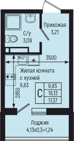 17,37 м²