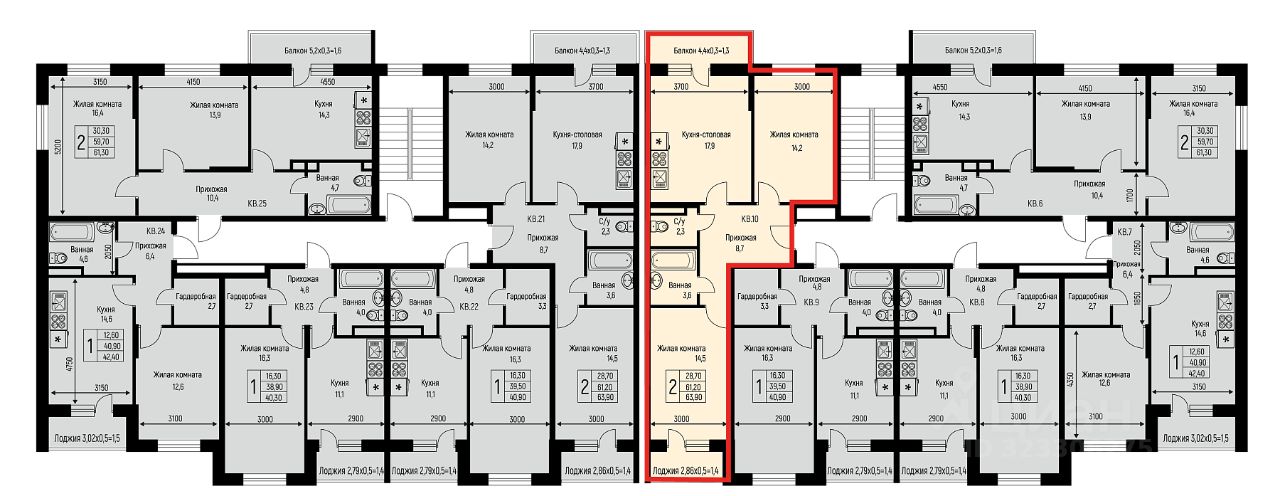 Продаётся 2-комнатная квартира в строящемся доме (Литер 25), срок сдачи: IV-кв. 2025, общей площадью 63.9 кв.м., на 2 этаже. Новый жилой комплекс "Nova Vita" от застройщика МЕТРИКС DEVELOPMENT расположен по адресу Краснодар, посёлок Берёзовый, улица имени А.Н. Лодыгина.