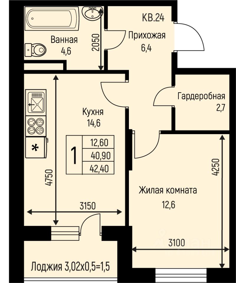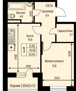 Продаётся 1-комнатная квартира в строящемся доме (Литер 25), срок сдачи: IV-кв. 2025, общей площадью 42.4 кв.м., на 2 этаже. Новый жилой комплекс "Nova Vita" от застройщика МЕТРИКС DEVELOPMENT расположен по адресу Краснодар, посёлок Берёзовый, улица имени А.Н. Лодыгина.