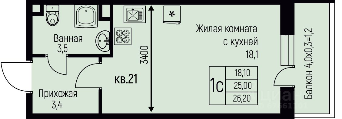 Продаётся студия в строящемся доме (Литер 23), срок сдачи: IV-кв. 2025, общей площадью 26.2 кв.м., на 1 этаже. Новый жилой комплекс "Nova Vita" от застройщика МЕТРИКС DEVELOPMENT расположен по адресу Краснодар, посёлок Берёзовый, улица имени А.Н. Лодыгина.