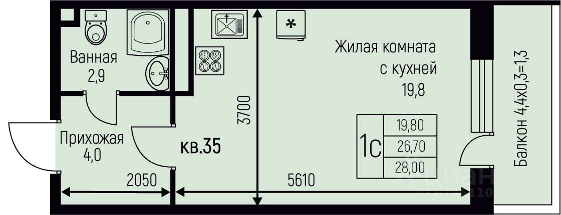 Продаётся студия в строящемся доме (Литер 23), срок сдачи: IV-кв. 2025, общей площадью 28 кв.м., на 3 этаже. Новый жилой комплекс "Nova Vita" от застройщика МЕТРИКС DEVELOPMENT расположен по адресу Краснодар, посёлок Берёзовый, улица имени А.Н. Лодыгина.
