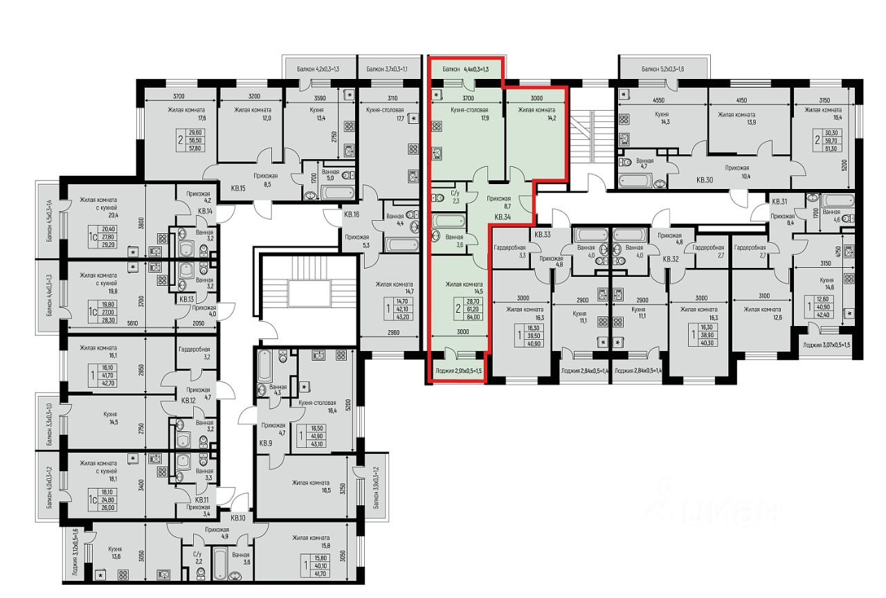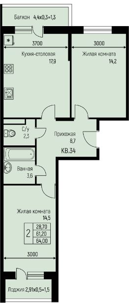 64 м²